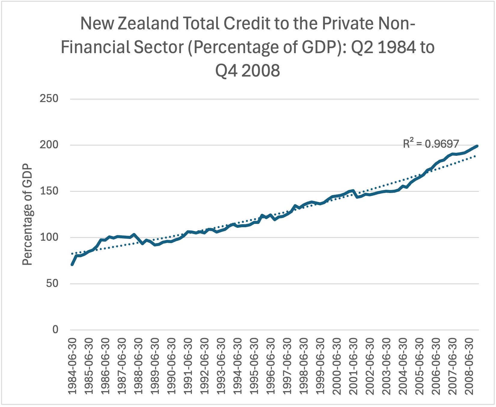 Low levels of private debt in the early 1980s (roughly 50% in New Zealand)